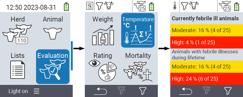 Weight,Temperature,RatingandMortality. SelectTemperatureand confirm withOK.The device now starts to calculate the success variables.