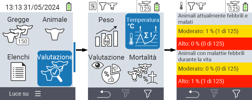 Peso,Temperatura,ValutazioneeMortalità. SelezionaTemperaturae conferma conOK.Il dispositivo ora inizia a calcolare le variabili di successo.