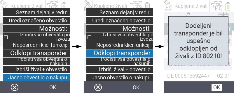 Odklopi transponderin potrdite zOK.Transponder je bil uspešno odstranjen.